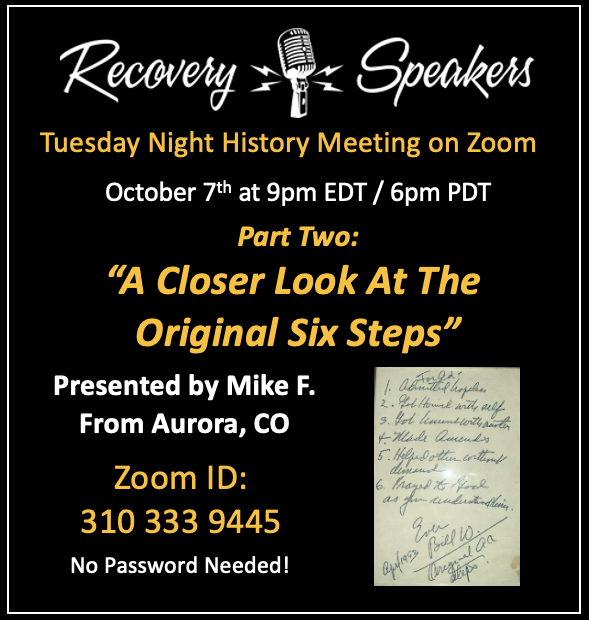 The past recordings of this meeting can be found at this link: https://www.recoveryspeakers.com/history/rs-history-meetings/