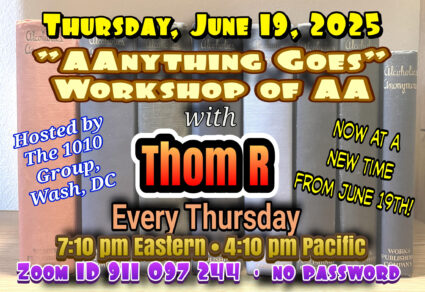 Thom R takes you “down the rabbit hole” with yet another episode of the AAnything Goes workshop. This time, he does a deep dive on the 12 Traditions, but with a fresh look and a different perspective. At least, that was the plan, anyway. 😉